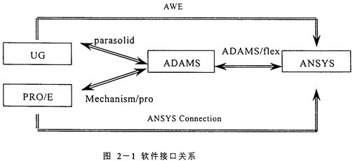 以上四個(gè)軟件均是當(dāng)今比較流行且功能強(qiáng)大的大型CAD/CAE軟件,然而考慮到ADAMS的內(nèi)核就是Parasolid,從UG中導(dǎo)入ADAMS的模型包含了在UG里定義的密度、質(zhì)量等幾何屬性,不需作任何變更就可使用;而PRO/E與ADAMS間通過Mechanism/pro模塊進(jìn)行連接時(shí)存在較多的問題,經(jīng)過長時(shí)間的摸索才連通,且發(fā)現(xiàn)在PRO/E里南非先將各個(gè)零件定義為剛體,作為子裝配只能定義為一個(gè)剛體,可是像RV減速器這樣的大模型在裝配過程中不可避免地含有子裝配并且子裝配中的零件間有相對(duì)運(yùn)動(dòng),將其定義為一個(gè)剛體是錯(cuò)誤的,為此,本課題中采用了UG、ADAMS與ANSYS形成的分析平臺(tái)。