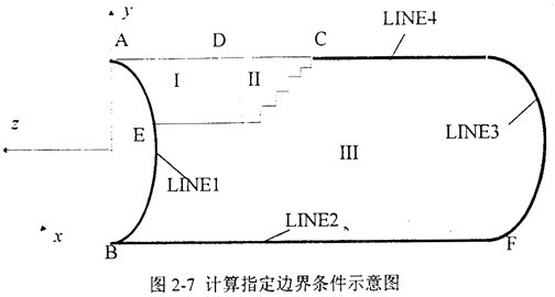 邊界條件,C點(diǎn)和邊界LINE4為運(yùn)動(dòng)邊界條件。I、Ⅱ及Ⅲ區(qū)隨時(shí)間而變化。