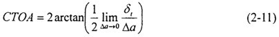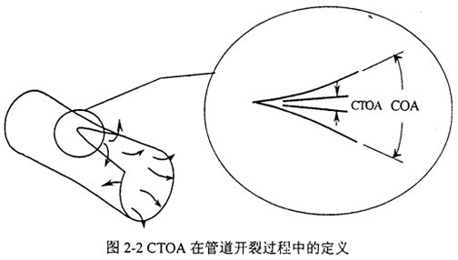 裂紋尖端張開(kāi)角CTOA(Crack Tip Opening Angle)最早被用來(lái)分析核電站管路的穩(wěn)態(tài)裂紋擴(kuò)展,后來(lái)用于輸氣管線(xiàn)和航空工業(yè)。如圖2-2,與裂紋張開(kāi)角COA不同,CTOA對(duì)應(yīng)于一定的斷裂擴(kuò)展?fàn)顟B(tài),不隨測(cè)量點(diǎn)的位置而改變。CTOA在數(shù)學(xué)上可以按下式定義: