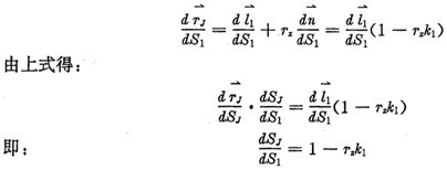 下面再推導(dǎo)一下齒廓及其法向等距線的相對(duì)曲率關(guān)系。設(shè)HJ的孤長參數(shù)為SJ,相對(duì)曲率為kJ,而H1的孤長參數(shù)為S1,相對(duì)曲率為k1,由微分幾何可得: