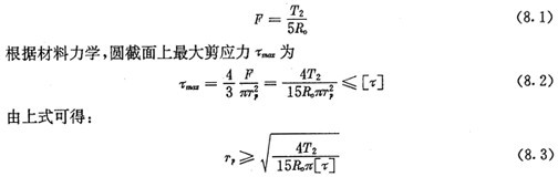 所有基本設(shè)計(jì)參數(shù)確定后,應(yīng)按軸銷所擔(dān)負(fù)的最大載荷來校核上面初選的軸銷半徑TP是否合適,根據(jù)最大剪應(yīng)力計(jì)算公式有: