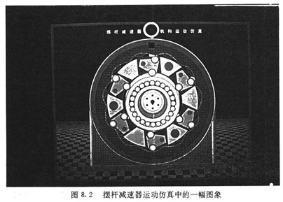 根據(jù)上述基本設(shè)計(jì)參數(shù)及各零部件的結(jié)構(gòu)參數(shù),將各主要運(yùn)動(dòng)部件的工作過程在計(jì)算機(jī)屏幕上動(dòng)態(tài)顯示出來。圖8.2是動(dòng)態(tài)仿真過程中的一幀圖象。計(jì)算機(jī)仿真結(jié)果與理論分析完全一致。
