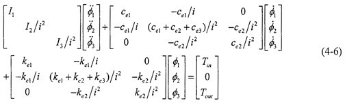 將式(4-5)用矩陣形式表達,則系統(tǒng)的動力學(xué)方程可寫為: