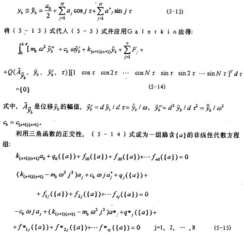 {fj({ a(k)})}是式(5-6)中恢復(fù)力Fj的傅立葉級(jí)數(shù)展開式各諧波分量的系數(shù)向量。當(dāng)向量{ a(k)}給定時(shí),首先由5-2節(jié)中所述方法算得各個(gè) 和 (j=1,2,…,n),其次由(5-6)式中恢復(fù)力Fj的各諧波分量的系數(shù)向量{fj({ a(k)})}。