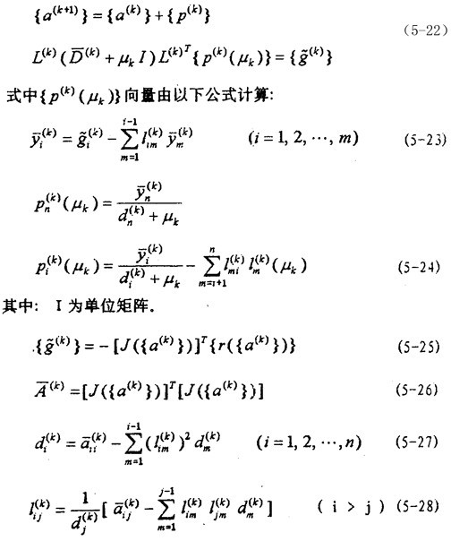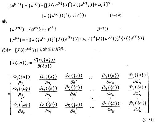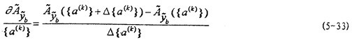 [J3]的計(jì)算實(shí)際上就是偏導(dǎo)數(shù) {fj({ a(k)})}/ { a(k)}的計(jì)算。計(jì)算方法與計(jì)算 {q({ a(k)})}的方法類似,故不再贅述。對(duì)于[J2],[J3]、分別有式(5-34)、(5-35)。