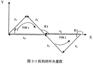 本章所要做的工作就是對(duì)上一章選出來(lái)的二自由度連桿機(jī)構(gòu),進(jìn)行運(yùn)動(dòng)學(xué)分析,初步選定機(jī)構(gòu)的結(jié)構(gòu)參數(shù),分析其輸入輸出速度能否滿足設(shè)計(jì)要求,為以后的動(dòng)力學(xué)分析做依據(jù)。
