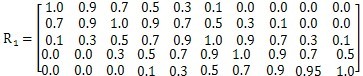 3.確定閾值及其矩陣 閾值即為轉(zhuǎn)折點(diǎn)值,可按某種規(guī)則取得,也可按照經(jīng)驗(yàn)或類(lèi)比的方法獲得,或直接從角矩陣中獲得相對(duì)閾值,即在象矩陣中尋找最大、最小、中等閾值,方法如下: