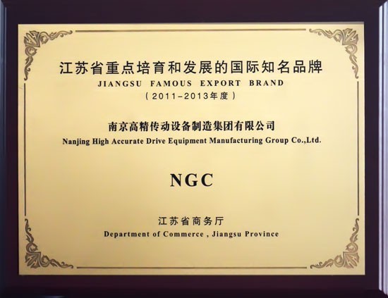 江蘇省商務(wù)廳于2011年8月15日上午在南京狀元樓酒店隆重召開(kāi)全省出口品牌工作會(huì)議,省領(lǐng)導(dǎo)、省商務(wù)廳及省有關(guān)單位領(lǐng)導(dǎo)為“2011-2013年度江蘇省重點(diǎn)培育和發(fā)展的國(guó)際知名品牌”企業(yè)授牌,南京高精傳動(dòng)設(shè)備制造集團(tuán)有限公司(以下簡(jiǎn)稱:南高齒)位列其中。