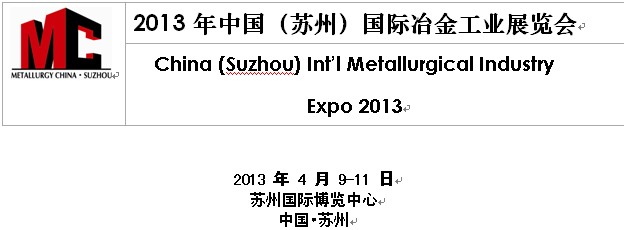 經(jīng)國(guó)家有關(guān)部門(mén)批準(zhǔn),由中國(guó)鋼鐵工業(yè)協(xié)會(huì),中國(guó)貿(mào)促會(huì)冶金行業(yè)分會(huì),冶金工業(yè)國(guó)際交流合作中心共同主辦的“2013年中國(guó)(蘇州)國(guó)際冶金工業(yè)展覽會(huì)”將于2013年4月9-11日在蘇州國(guó)際博覽中心舉辦,兩年一屆。
