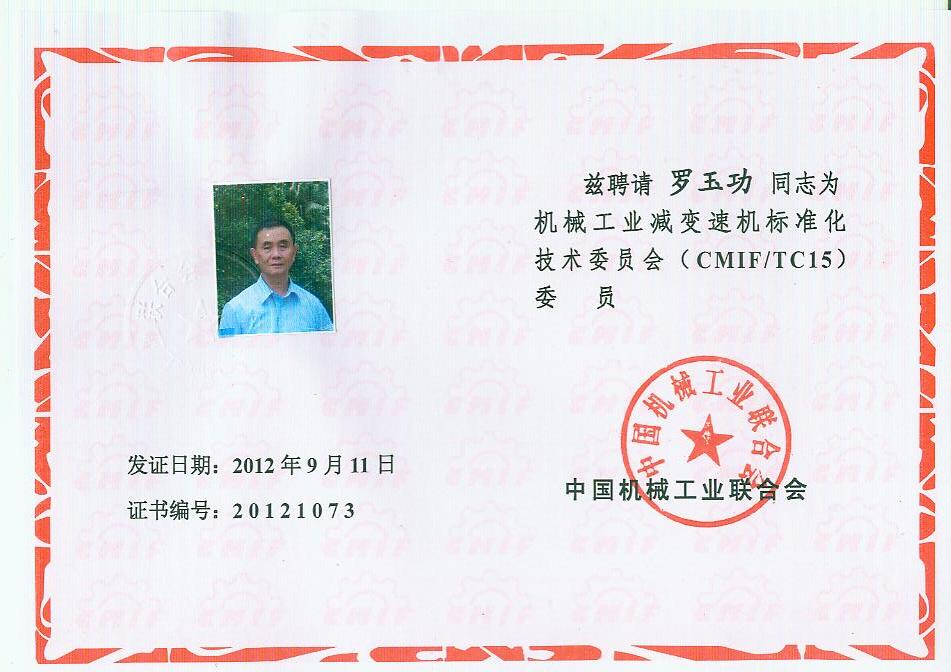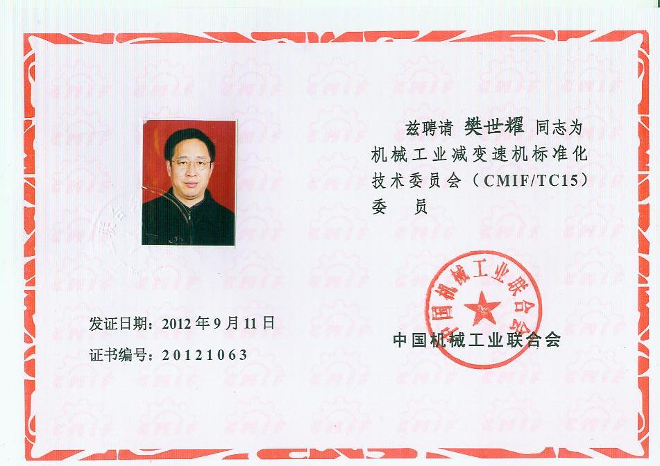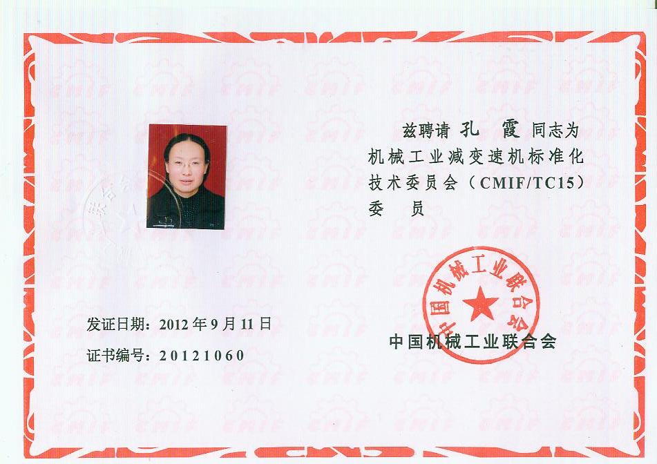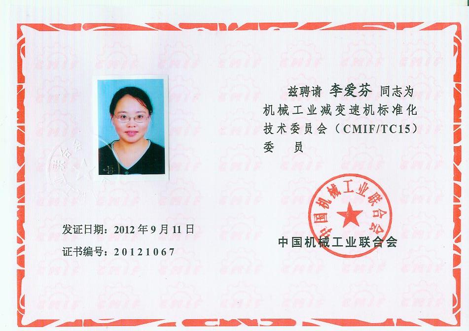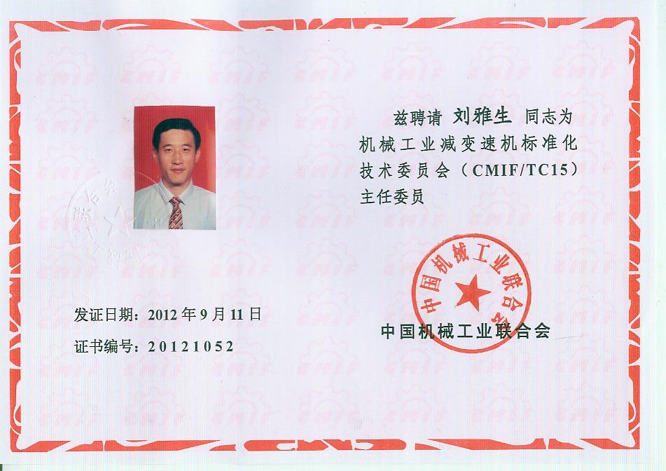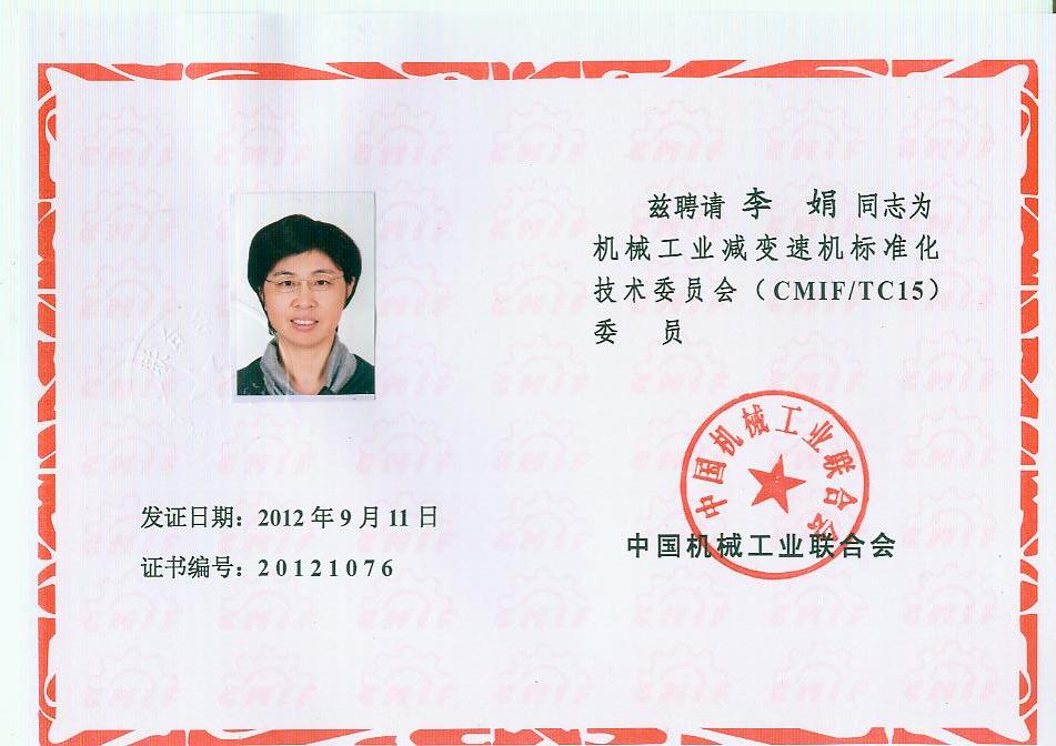 你會《關(guān)于報送機(jī)械工業(yè)減變速機(jī)標(biāo)準(zhǔn)化技術(shù)委員會(第二屆)換屆文件的函》(機(jī)減標(biāo)委秘字[2012]08號)收悉。經(jīng)研究,同意機(jī)械工業(yè)減變速機(jī)標(biāo)準(zhǔn)化技術(shù)委員會換屆及組成方案。第二屆機(jī)械工業(yè)減變速機(jī)標(biāo)準(zhǔn)化技術(shù)委員會(CMIF/TC15)由29名委員、1名顧問組成(委員名單見附件),劉雅生任主任委員;王瑜、張謙、王金武、姜耀林任副主任委員;劉志新任委員兼秘書長;周有強(qiáng)任顧問。秘書處設(shè)在天津市石化通用機(jī)械研究所。