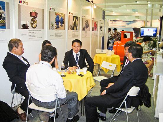 與客戶交流洽談(左四:高精船用總經(jīng)理陳永道)