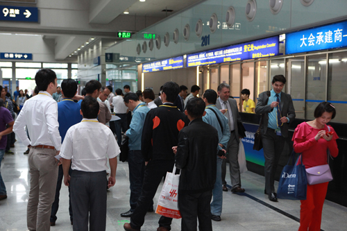 從觀眾報到處了解到,開展第一天接待的參觀采購團就多達10多個,比亞迪、富士康、佳能、美的集團、格力電器、TCL、松下、非晶材料企業(yè)參觀團等大型用戶企業(yè)均到場參觀采購。