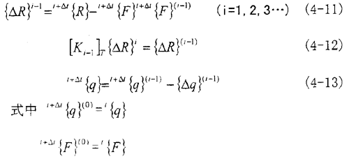 上述方程是根據(jù)有限元系統(tǒng)的響應線性化得到的,每一次迭代都是用式(4-11)算小平衡的載荷向量,由這些載荷向量從式(4-10)中導出位移向量,然后繼續(xù)迭代直至不平衡線荷同量{ΔR}(i-1)或位移向量qi足夠小為止。