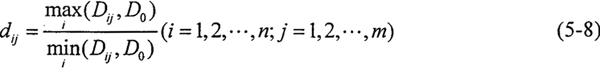 對(duì)于式(5-4),若存在x*使f1(x),f2(x),…,fm(x)全部達(dá)到最小,則稱x*為理想解。在多目標(biāo)優(yōu)化設(shè)計(jì)中,由于目標(biāo)函數(shù)間相互制約,往往得不到理想解,而滿意解也不止一個(gè),因此定義最接近理想解的滿意解為最滿意解。應(yīng)用灰色聚類分析方法求解多目標(biāo)優(yōu)化設(shè)計(jì)中的最滿意解,具體步驟如下所示:
