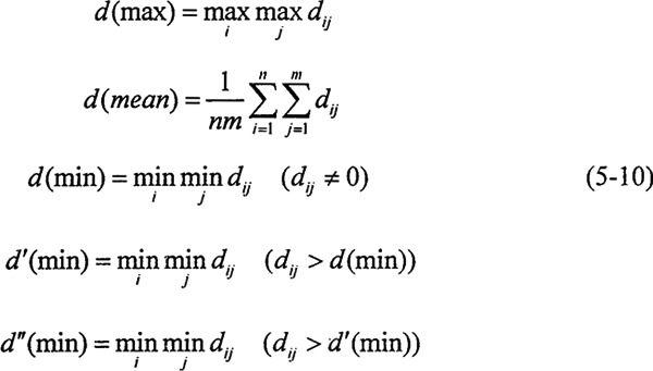 2.求轉(zhuǎn)換樣本矩陣 即象矩陣 由于指標(biāo)不同,要求不同,因此有必要按上限效果測(cè)度、下限效果測(cè)度、中心效果測(cè)度來統(tǒng)一樣本。當(dāng)指標(biāo)要求“越大越好”時(shí),可用上限效果測(cè)度,記統(tǒng)一后的樣本為dij,則有