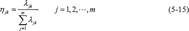 則第j個(gè)指標(biāo)屬于第k個(gè)灰類的標(biāo)致定聚類權(quán)ηjk為