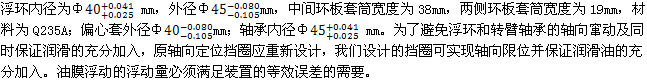 | 中間環(huán)板浮動環(huán)內(nèi)徑、外徑、厚度 | Ф內(nèi)40mm、Ф外45mm、38mm |