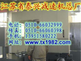 江蘇泰興減速機(jī)總廠業(yè)務(wù)部 在改革開放中崛起的江蘇省泰興減速機(jī)廠,現(xiàn)已成為中國減速機(jī)生產(chǎn)基地,中國機(jī)械工業(yè)500強(qiáng)重點(diǎn)企業(yè)。2004年公司完成含稅銷售收入6億元