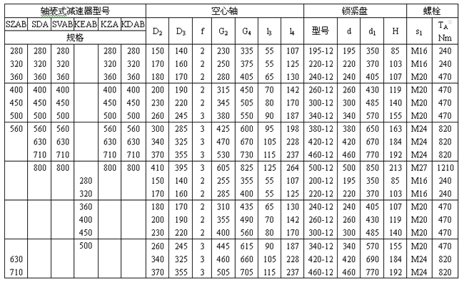 K系列圓錐—蝸柱齒輪減速器鍵聯(lián)接型空心軸的聯(lián)接尺寸